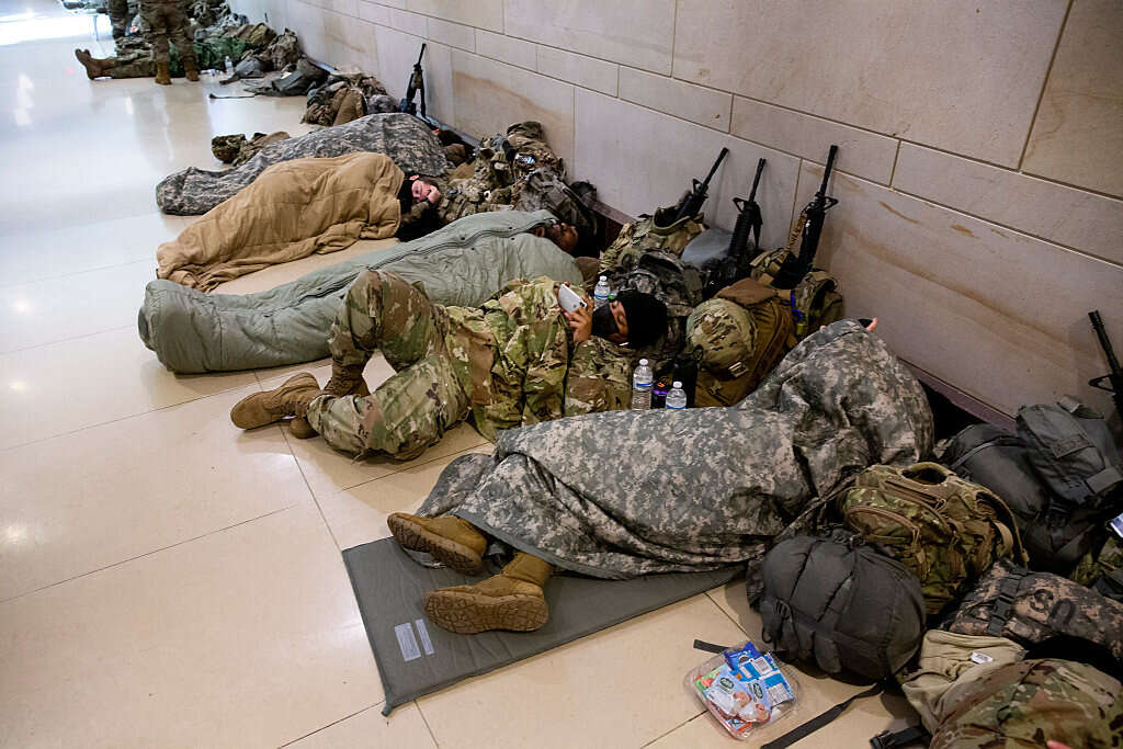מספרם הכולל של החיילים בבירה בשבוע שעבר עמד על כ-25 אלף, לאחר שהוקפצו מכל רחבי ארה"ב כדי לוודא שלא יהיו התפרעויות במהלך ההשבעה. התמונות המשפילות שלהם הפכו לוויראליות מייד עם פרסומן, ולאות מחאה, חלק מהמושלים של המדינות ששלחו את כוחות המשמר הלאומי שלהן הורו על החזרתם מוושינגטון, כולל טקסס וניו המפשייר, תוך שהפנו אצבע מאשימה לדמוקרטים, ששולטים בשני בתי הקונגרס ויכלו למנוע את היחס המנוכר הזה.