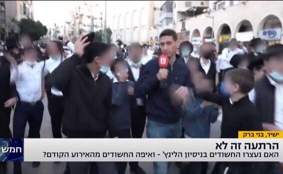 "אנחנו מנסים להתקדם תוך כדי", אמר הכתב בעודו נדחף ונהדף על ידי עשרות חרדים שהתגודדו סביבו. פרט לקריאות כגון "נטפלים לחרדים, לאתיופים לא היו עושים את זה" למיקרופון של מניב במכוון, הצעירים גם דחפו את הצלם, הסתירו בידיהם את המצלמה ושרו בקולי קולות על מנת להפריע לשידור.