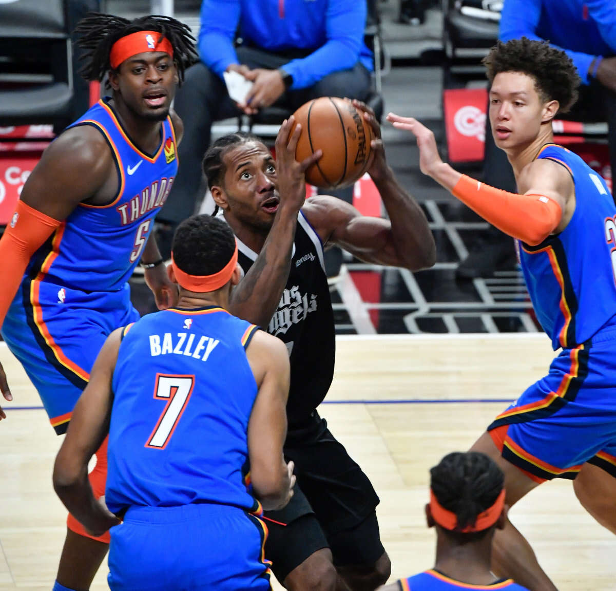 ניצחון שביעי ברציפות לקבוצה מעיר המלאכים שנמצאת כעת עם מאזן זהה ליריבתה העירונית בפסגת המערב. הקליפרס פתחו יתרון דו-ספרתי כבר ברבע הראשון אותו סיימו בתוצאה 19:36. ברבע האחרון אוקלהומה התקרבה עד ל-96:102, אך החבורה של טיירון לו ידעה לשמור על הניצחון. קוואי לנארד היה נהדר עם 34 נקודות, 9 כדורים חוזרים ו-8 אסיסטים, ללא איבודים. סרג' איבקה תרם 17, רג'י ג'קסון הוסיף 14. בצד המפסיד שיי גילג'ס אלכסנדר הצטיין עם 23 נק', 7 אס' ו-6 ריב', ג'ורג' היל הוסיף 22 אבל זה לא הועיל לת'אנדר להימנע מהפסד שלישי ברציפות.