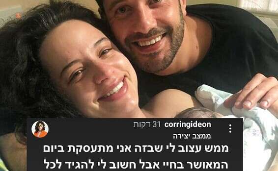 קורין גדעון תיעדה במהלך החודשים האחרונים את שלל שלבי ההיריון שלה - מההכרזה עליו ועד הלידה היום (רביעי) בבוקר. כעת נראה שהמנחה הצעירה לא חוסכת מעוקביה גם את תהליך ההתאוששות ונראה שהחוויה לא עוברת בצורה נעימה במיוחד, אם לשפוט לפי סטורי שהעלתה באותו יום ממש בו נולדה בתה הבכורה.