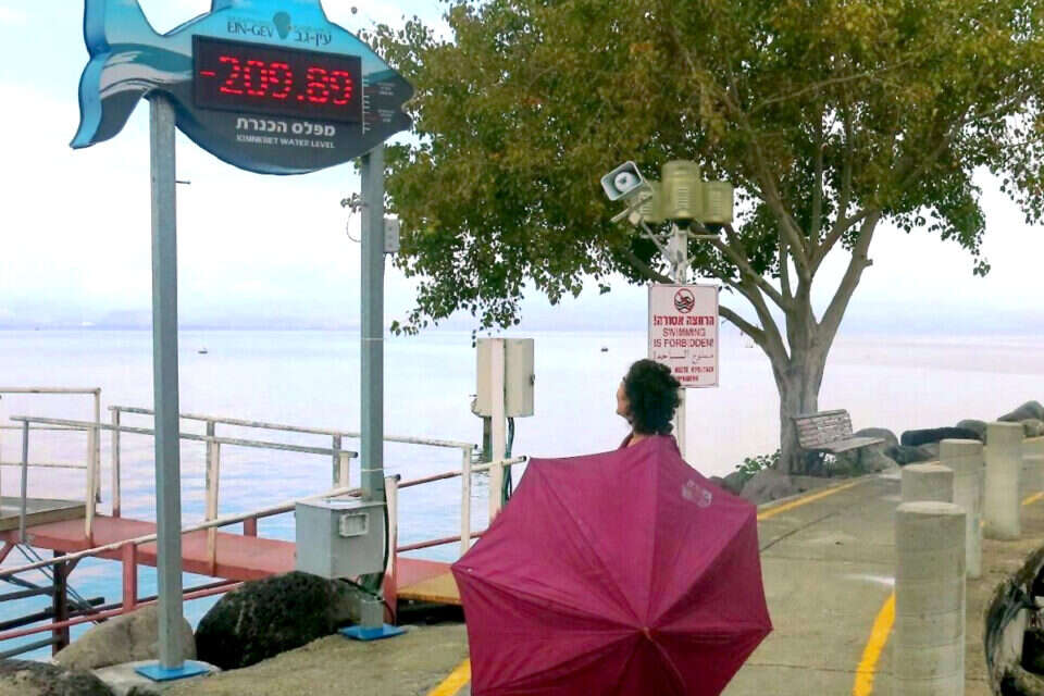בנמל קיבוץ עין גב שבמזרח הכנרת, הוצב היום מד מפלס חדש, שמציג באופן דיגיטלי את גובה המפלס.