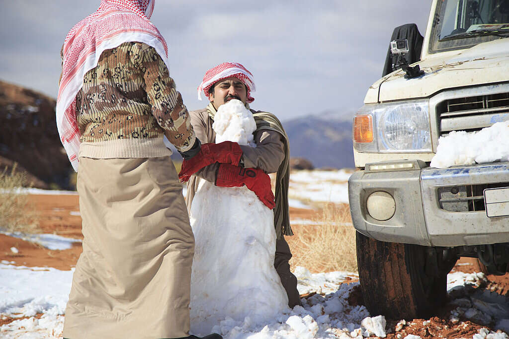 ככלל, העיר טאבוק, שנמצאת במרחק של כשלוש שעות נסיעה בלבד מאילת, הפכה למוקד עלייה לרגל בחצי האי ערב בעקבות ההתרגשות הרבה מהשלג שהתחיל להיערם היום (חמישי) לפנות בוקר. אדרבא, לפי התחזית, השלג צפוי להמשיך לרדת באזור לאורך סוף השבוע.