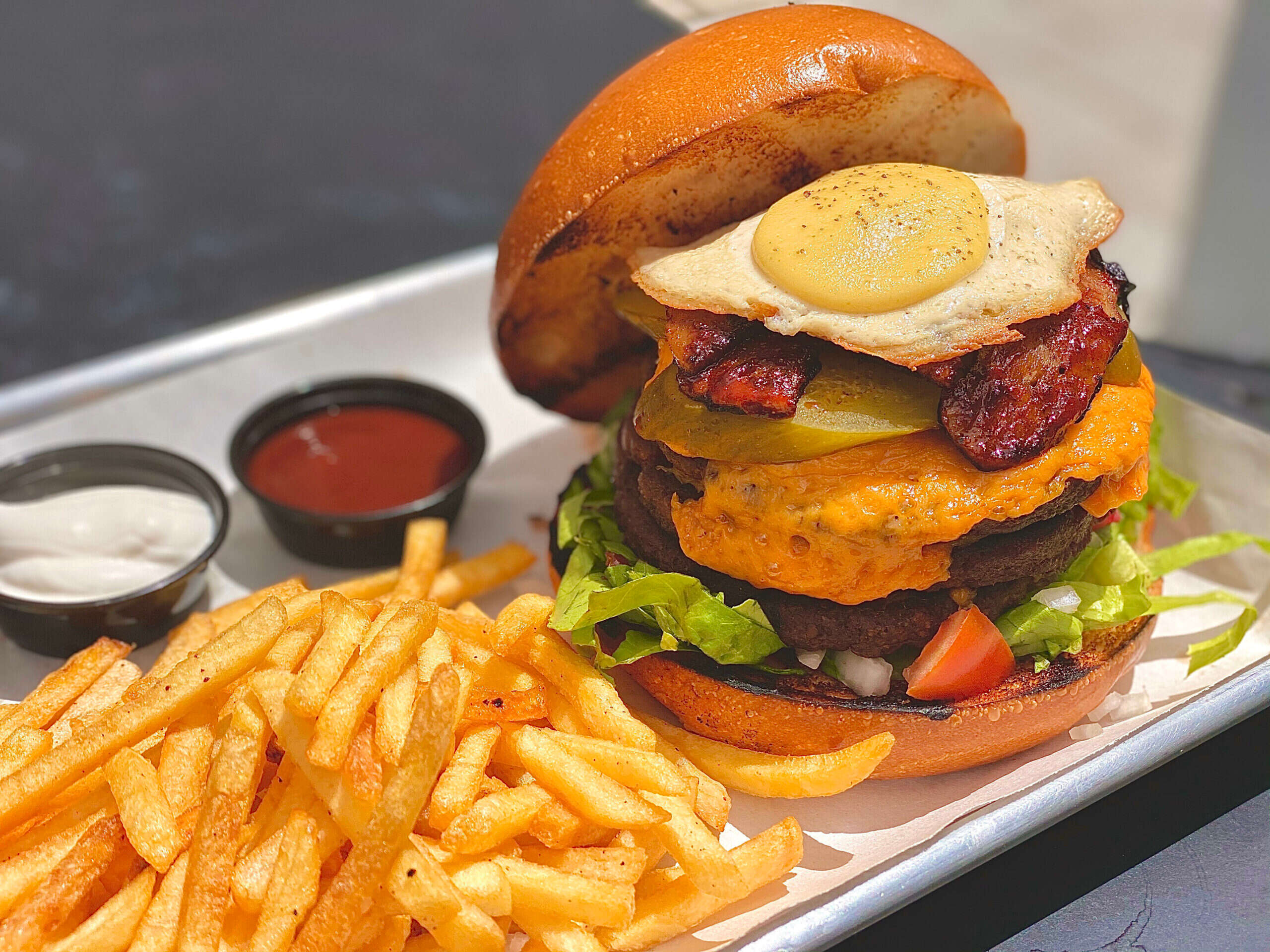 המנה הראשונה שטעמנו היא ״הענק הירוק״. מנת הדגל של המקום – המבורגר טבעוני. המנה מורכבת מקציצת חלבון סויה, ירקות, ושלל תוספות שיכולות לבוא מעל - גבינת מוצרלה, צ׳דר, שלל רטבים וכמובן שהכל - טבעוני.