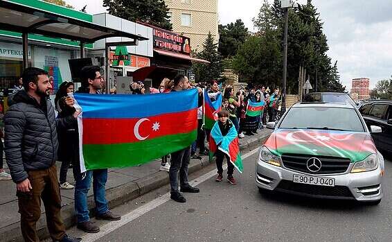 אזרחים אזרים חוגגים את כיבוש שושה // צילום: איי.אף.פי // אזרחים אזרים חוגגים את כיבוש שושה