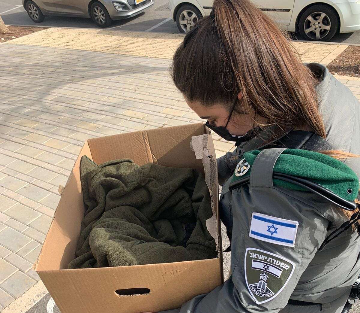 הלוחם קרא לחבריו מהבסיס, הרחיק את העורב, ואסף את גור החתולים אל תוך קרטון וכיסה אותו במעיל שלו.