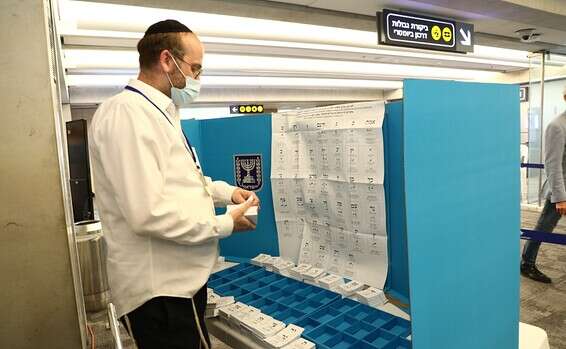 בחירות בישראל 2021: לראשונה בהיסטוריה של מדינת ישראל הוצבו הבוקר (שני), יום הבחירות לכנסת ה-24, קלפיות בנתב"ג.