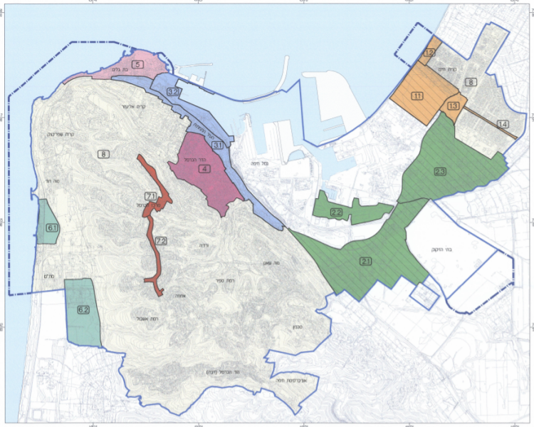 על פי מסמכי התוכנית, חיפה מחולקת למתחמי תכנון.