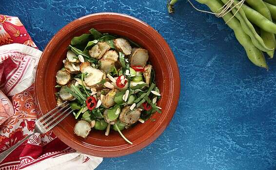 .6 מבשלים במי מלח רותחים את הפול הירוק כ-3 דקות, עד שהוא מתרכך אך לא יותר מדי.