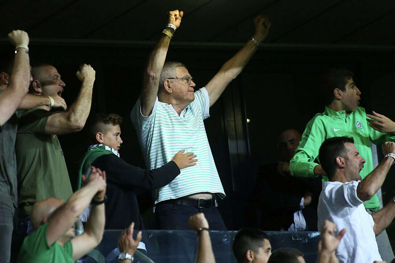 יעקב שחר ביציע עם המשפחה. "כמו ילד בן 18"
