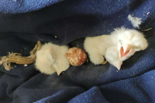 בשלב זה, שלושה גוזלים וביצה נפלו מתוך החור. גוזל נוסף נתלה בגובה באמצעות חוט שנכרך סביב רגלו, והוא שוחרר לאחר שהפועלים הזיזו בעדינות את הקורה – עד שהצליחו להגיע אליו ולגזור את החוט.