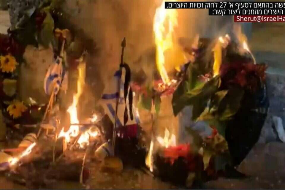 "מעשה מזעזע של חילול כבוד הנופלים": רה"מ בנימין נתניהו התייחס היום (חמישי) לאירוע שריפת הדגלונים וזרי האבל שהונחו על קברי חללים בהר המנוחות בירושלים ביום הזיכרון. "אני מגנה בתוקף את המעשה הברברי ומצפה מהגורמים המוסמכים למצות את הדין עם האחראים במהירות האפשרית", אמר.