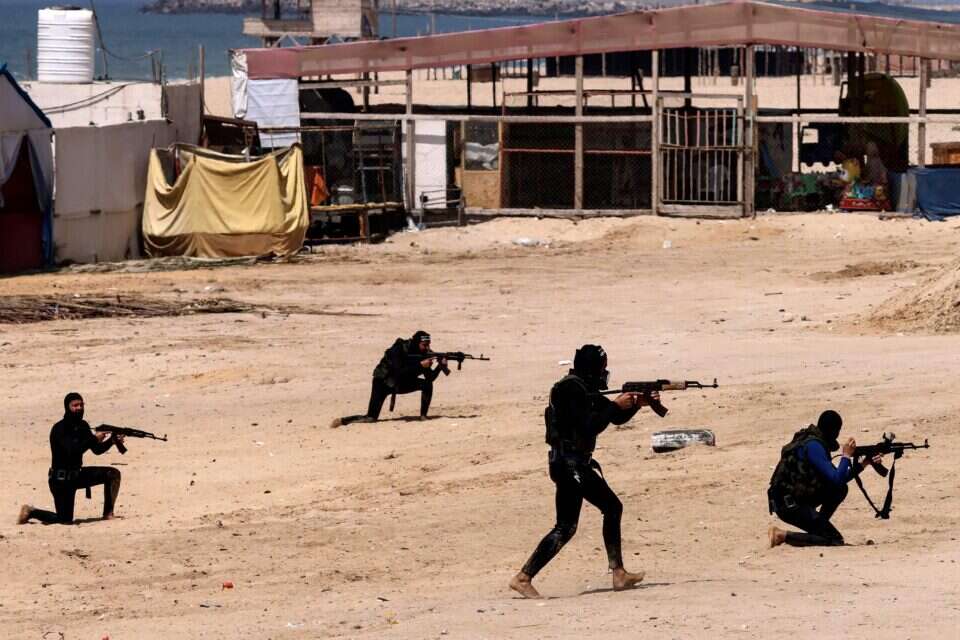 פעילי חמאס ברצועת עזה במהלך תרגיל צבאי, אתמול, צילום: צילום: איי.אף.פי.