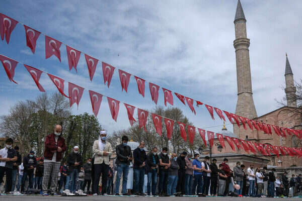 תפילת יום השישי ברחבת איה סופיה ביום שישי האחרון | צילום: אי.פי.אי