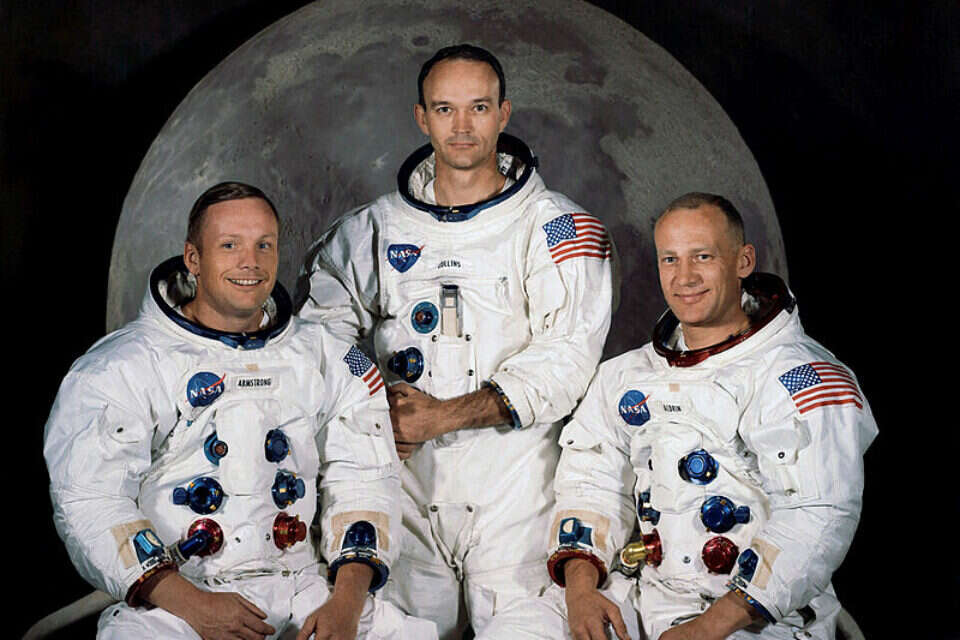 קולינס (באמצע) עם חבריו לטיסת אפולו 11, באז אולדרין (מימין), וניל ארמסטרונג (משמאל) , צילום: איי.אף.פh