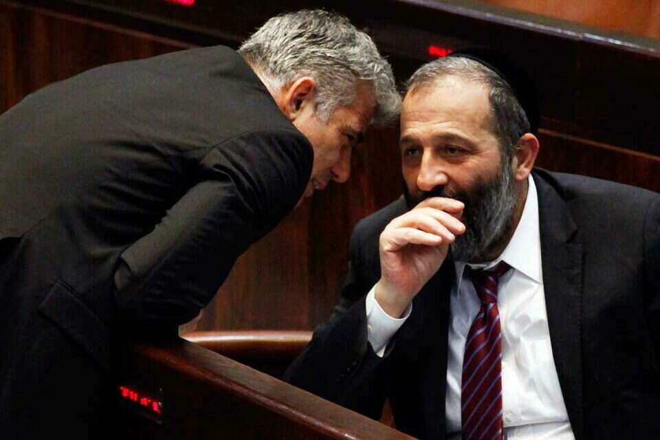 צילום: אורי לנץ // דרעי ולפיד במליאת הכנסת