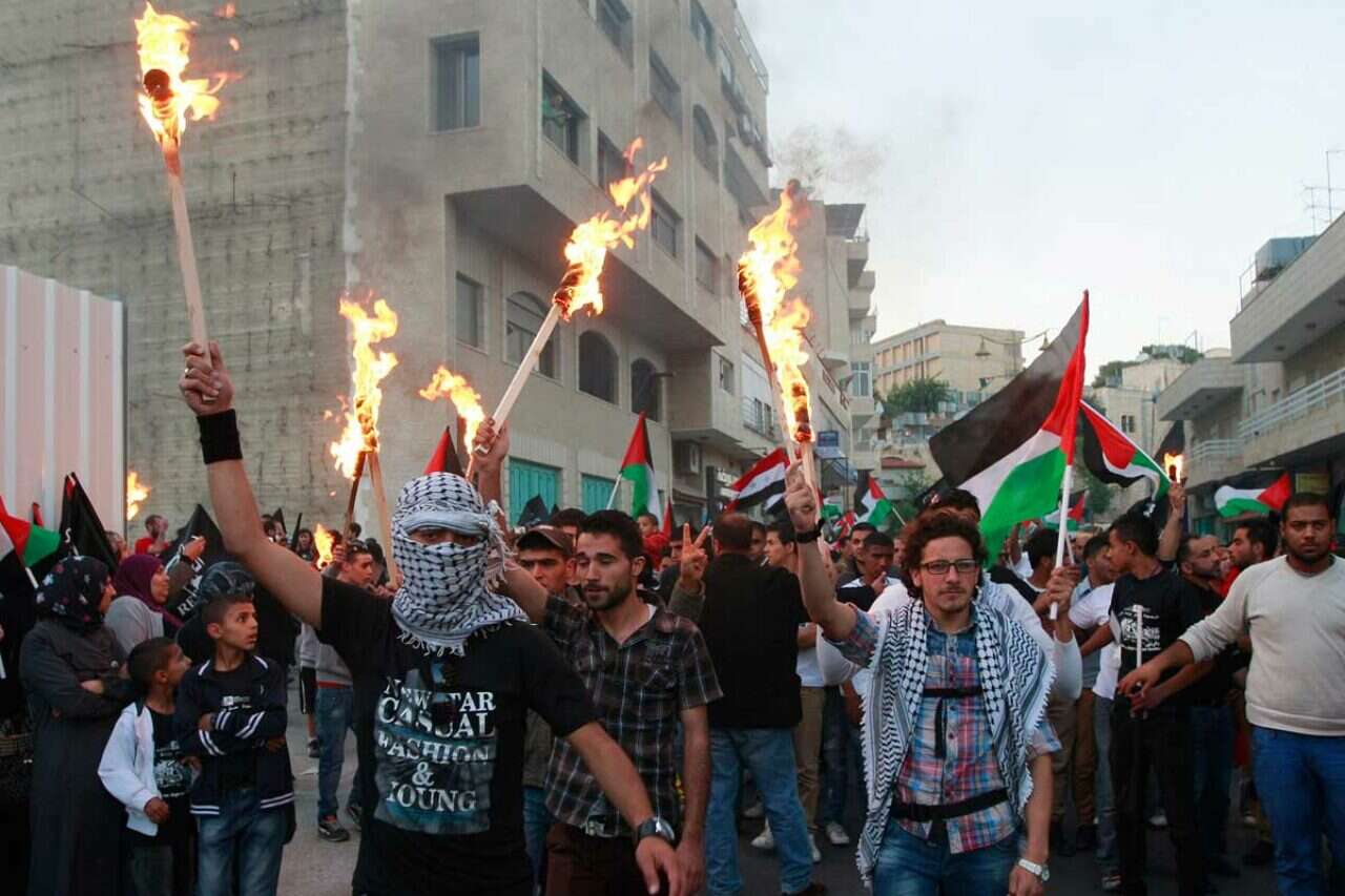 צילום: אי.פי // מפגינים נושאים לפידים בבית לחם, אתמול