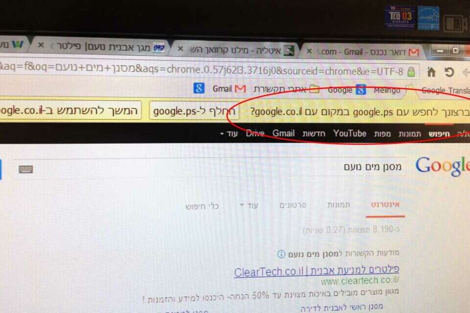 לידי הפורום המשפטי למען ארץ ישראל הגיעו תלונות של תושבים מאזור גוש עציון, שביקשו לבצע חיפוש בעמוד הבית של גוגל ונדהמו למראה הודעה שהציעה להם לבצע את החיפוש באמצעות הדפדפן google.ps במקום הדפדפן google.co.il. שחר, תושב גוש עציון, אמר כי "זו פשוט חוצפה".
