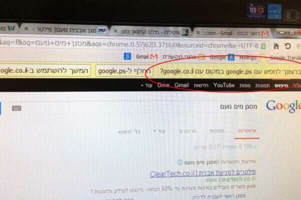 לידי הפורום המשפטי למען ארץ ישראל הגיעו תלונות של תושבים מאזור גוש עציון, שביקשו לבצע חיפוש בעמוד הבית של גוגל ונדהמו למראה הודעה שהציעה להם לבצע את החיפוש באמצעות הדפדפן google.ps במקום הדפדפן google.co.il. שחר, תושב גוש עציון, אמר כי "זו פשוט חוצפה".
