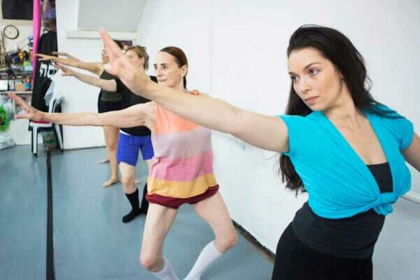 היום אנחנו רק נשים בסטודיו, עובדות על ניגודיות. "צריך להתנגד לתנועה, כן ולא במקביל. ניגודיות מביאה לאיכות אחרת. ולהתלבטות יש ערך", היא אומרת, ומדגימה. אני מבינה רק כשהיא מבצעת. הידיים שלה ארוכות וחזקות, הרגליים דקות ומוצקות, והגוף נשמע לה. אני מנסה לחקות אותה. זה מצליח חלקית.