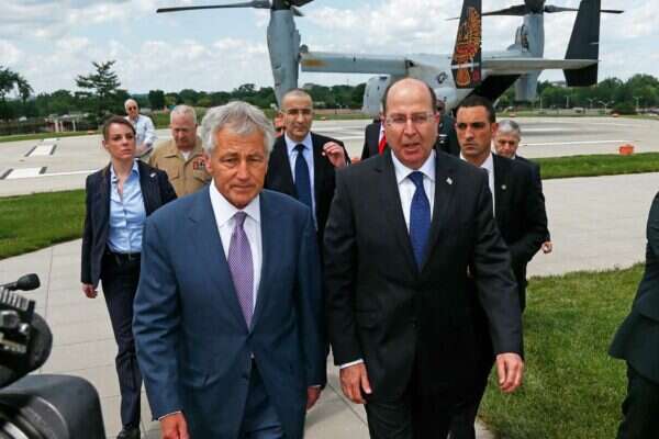 יעלון הגיע לוושינגטון, לראשונה מאז נכנס לתפקידו כשר ביטחון, כדי להיפגש עם עמיתו האמריקני מזכיר ההגנה צ'אק הייגל. השניים הגיעו לפנטגון במטוס־מסוק מסוג V22 אוספריי, שאותו מתכוונת ישראל לרכוש.