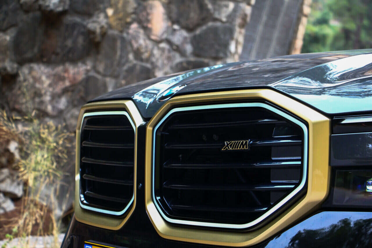 את האמת שמזוויות מסוימות ובעיקר מאחור אפשר להתרגל לייחודיות הזו, אבל מישהו בב.מ.וו החליט שאפשר בטעות לפספס את ה-XM כשהוא חולף ברחוב, לכן שבכת הכליות שקיבלה גאן עוד פרשנות מוגזמת וענקית זכתה לתאורת LED משלה. דגם המבחן היה בעל גימור מוזהב לשבכה, לפסי הקישוט בגוף, בפגושים בחישוקים העצומים בקוטר 23 אינץ’ שהפך אותו למוחצן באופן שגורם לתהות האם מדובר בהתקנה מקורית או בעבודת אפטרמרקט של סדנה בדובאי.