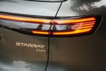 את האמת שבמבט חטוף קשה למצוא אותם. חיצונית הצללית דומה, אבל מבט מעמיד מגלה שבסטאריי ישן יחידות תאורה מעט שונות עם פס לד המחבר בינהן שאינו קיים ב-EX5 וגם עיצוב כונסי האוויר בפגוש שונה, כי בכל זאת יש כאן מנוע בעירה פנימית שזקוק לקצת רוח. למרות המראה הדומה, הסטאריי ארוך ב-13 ס”מ מה-EX5 החשמלי. זה לא ממש בא לידי ביטוי במרחב מאחור שהוא בלאו הכי מעולה בכל ממד כיוון שההבדל בבסיס הגלגלים הוא רק חצי ס”מ (275.5 ס”מ בסך הכל). תא המטען לעומת זאת יוצא נשכר עם נפח שצמח ב-67 ליטרים לנפח של 528 ליטר בסך הכל.