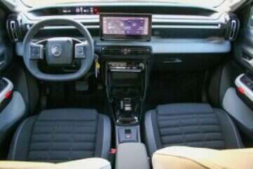 כשעוברים לחלק הקדמי של תא הנוסעים פוגשים את הגישה המינימליסטית המדוברת של סיטרואן העכשווית. זה בא לידי ביטוי בקווים הישרים ומיקומו המוסווה של לוח המחוונים שהוא מסך צר הממוקם גבוה ורחוק באזור השמשה קדמית. הוא לא דורש הסטת מבט מהכביש, אך הוא בעל תצוגת מידע בסיסית מאד. יש מסך מולטימדיה מרכזי, אך הוא בעל ממשק מיושן ודל באפשרויות כהוא משמש בעיקר להגדרות בסיסיות ולתפעול מערכות הניווט/שמע עם הקישוריות הנדרשות. הפיקוד על בקרת האקלים נעשה באמצעות פאנל מתגים קל לשימוש, אך הוא ממוקם מעט נמוך מידי. תנוחת הנהיגה טובה, שילוב הדיפונים הבהירים נותן תחושה נעימה והמושבים נוחים גם בנסיעות ארוכות.