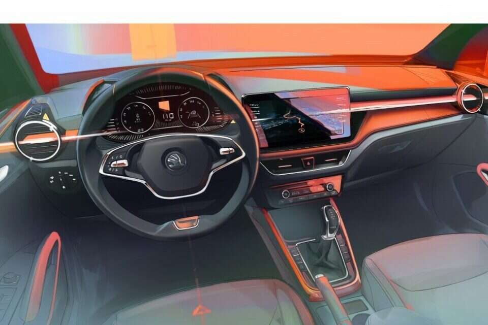 סקודה מעניקה לנו מבט ראשון לאיך אמור להיראות תא הנוסעים של הפאביה החדשה עם סקיצה עדכנית שהיא מפיצה. הסופרמיני מקבלת שדרוג כללי בהשראת האוקטביה לרבות ההגה הדו-חישורי שנראה זהה כמעט לגמרי.