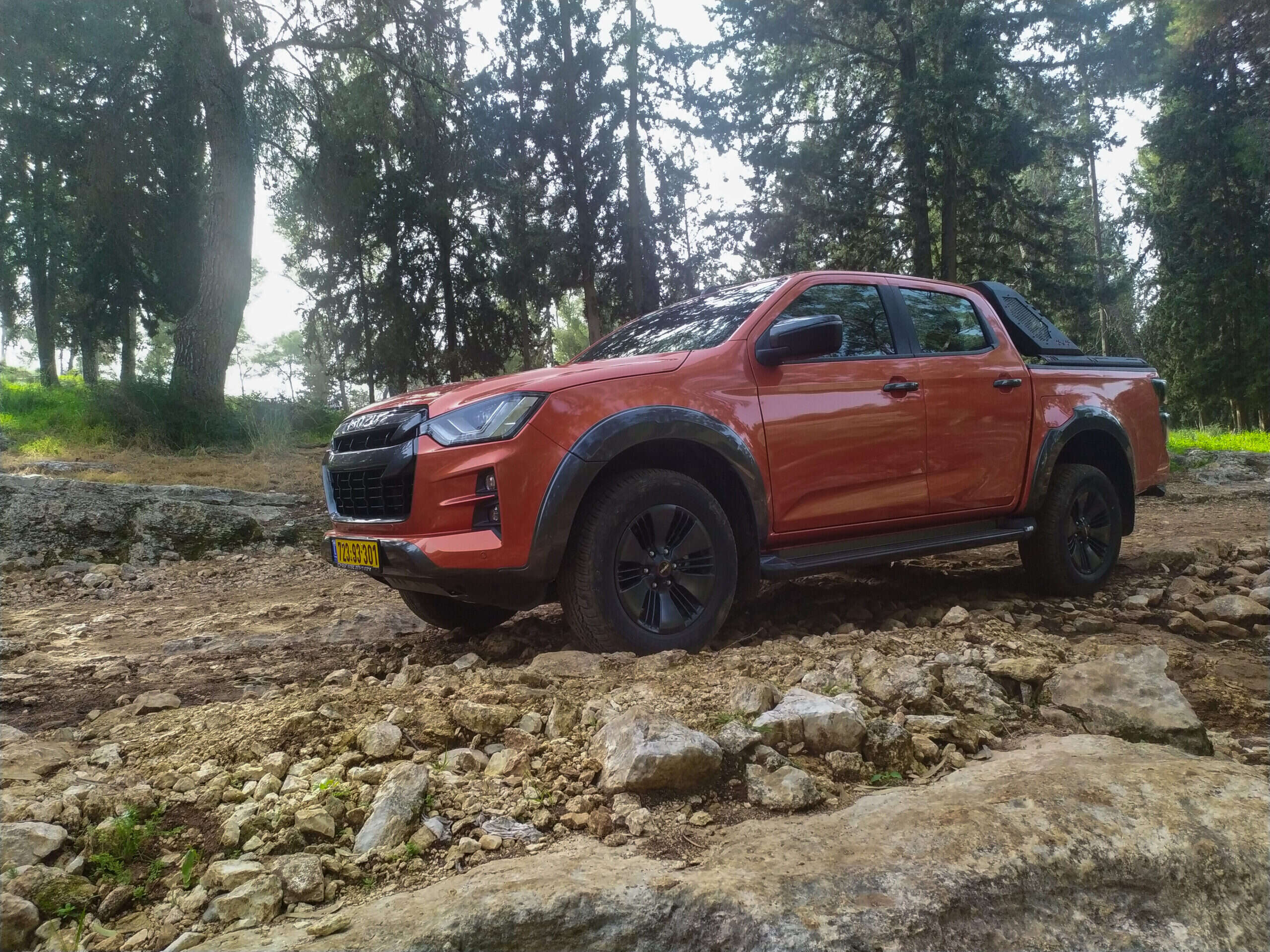 השינוי החיצוני בולט, והוא בולט עוד יותר עם צבעו העז של רכב המבחן. הכתום הצרחני בשילוב החישוקים הכהים של גרסת הפרימיום LSE הנבחנת, לא הותירו אף-אחד אדיש. גם לא אותנו. אלו לא רק יחידות התאורה החדשות והחכמות מלפנים, זה בעיקר האף הרחב, שקווי הכוח על תא המנוע, מדגישים אותו יותר. המרכב המעוצב גדול יותר, עם מפתחים משופרים לדלתות ולטענת איסוזו הוא גם חסון יותר. לגבי שלדת הסולם עצמה, הם כבר משתמשים במספרים. היא לא רק רחבה מהקודמת, קורות האורך עצמן עבות יותר ויש כאן 8 קורות רוחב – יותר מהמקובל בתחום. העמידות לפיתול עלתה ב-20 אחוזים והקשיחות האורכית ב-26 אחוזים.