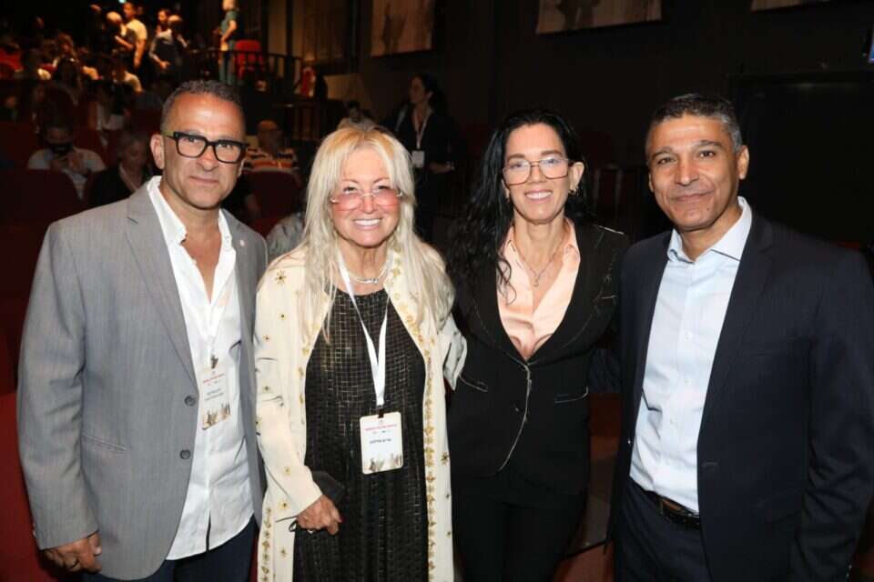 מנכ"ל בנק מזרחי טפחות משה לארי (מימין), מייסדת ומנכ"לית icon ו- Code for Israel יסמין לוקאץ', מו"ל "ישראל היום" ד"ר מרים אדלסון ומנכ"ל SFI ירון נוידרפר, צילום: סלי פרג'