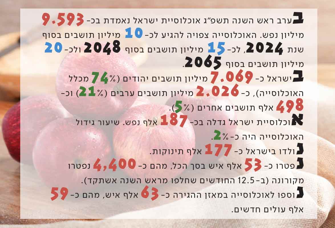 הלשכה המרכזית לסטטיסטיקה פרסמה היום (שלישי) נתונים לקראת ראש השנה תשפ"ג. כמה תינוקות נולדו השנה בישראל, כמה תושבים יהיו כאן בעוד שנה, ובכמה גדלה אוכלוסיית ישראל בשנה האחרונה?