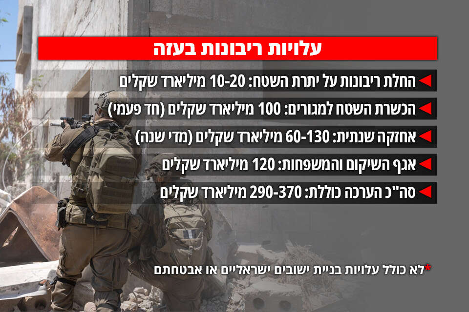 הערכותיו של עמינח, שתואמות את ההערכות הראשונות של הגורמים במערכת הביטחון שמעורים בפרטים, העליות הן כאלה: דהירה של הצבא לכל חלקי עזה שבהם הצבא אינו שולט בגלל החשש להימצאות חטופים שם, יעלה בין עשרה ל-20 מיליארד שקל.