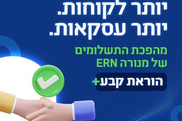 שלב חמישי: מנורה ERN תזכה את בית העסק בסכום התשלום כארבעה ימי עסקים לאחר חיוב הלקוח בחשבון הבנק.