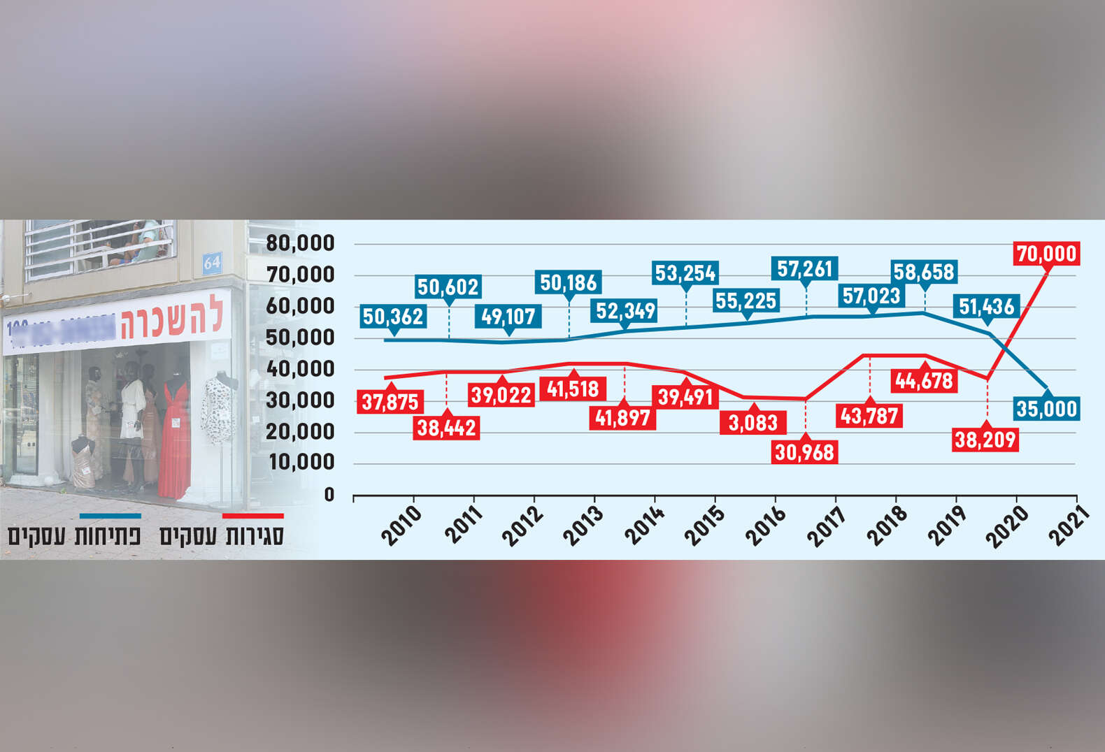 ואולם, בכל הנוגע לעסקים הקטנים והבינוניים מצטיירת תמונת מצב שונה לחלוטין. כך לפחות עולה מהערכות ראשוניות של לשכת העצמאים בישראל, שלפיהן בשנת 2021 נסגרו 70 אלף עסקים - לעומת 35 אלף עסקים בלבד שנפתחו.