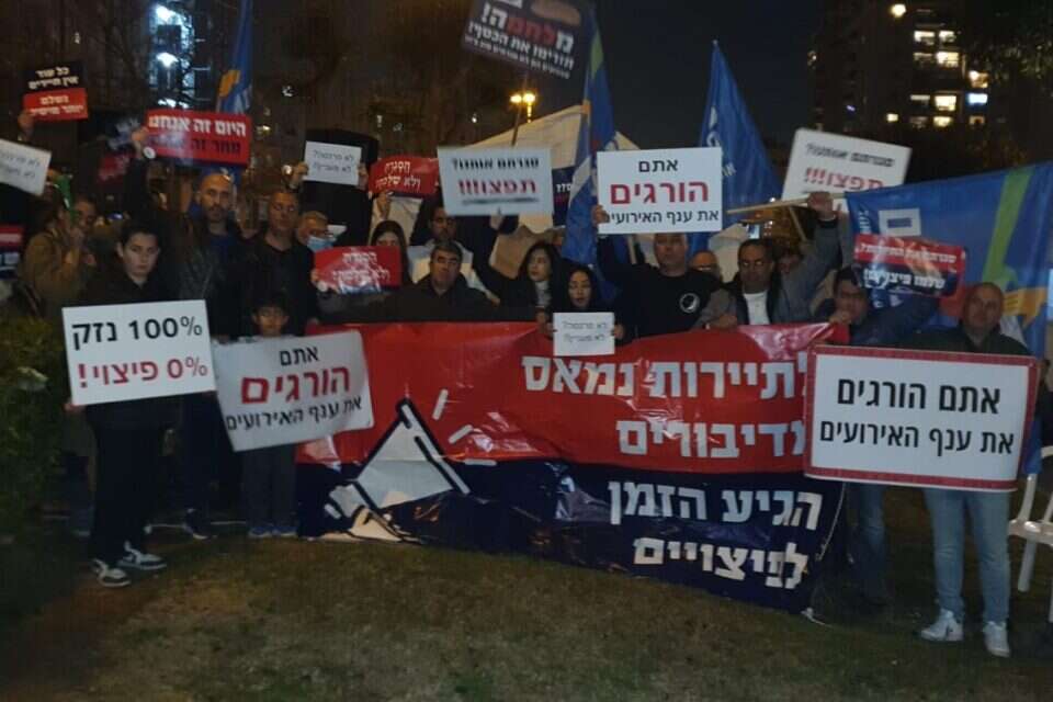 עשרות אנשי ענף האירועים הפגינו מול ביתו של לפיד // קרדיט: רוזנבאום תקשורת