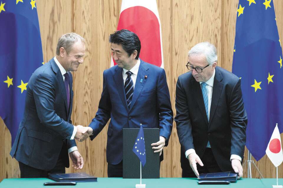 האיחוד האירופי ויפן חתמו על שלשום על הסכם סחר חופשי. ההסכם הזה צפוי להיכנס לתוקף במלואו עד סוף שנת 2019.