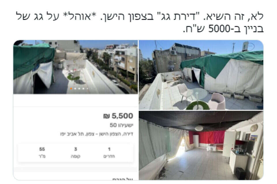 לא, זה השיא. "דירת גג" בצפון הישן. *אוהל* על גג של בניין ב-5000 ש"ח. pic.twitter.com/YJYckWEPtN