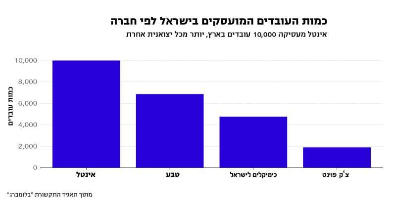 אינטל מעסיקה 10 אלף עובדים // הנתונים מתוך תאגיד התקשורת "בלומברג"