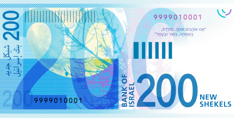 מחנוכה אצלכם בארנק: השטר החדש של 200 השקלים, הנושא את דיוקנו של משורר מלחמת העצמאות נתן אלתרמן, ייכנס למחזור בסביבות חג החנוכה. בנק ישראל פרסם לראשונה את הגלופות של השטר החדש בעריך 200 השקלים שצבעו תכלת.