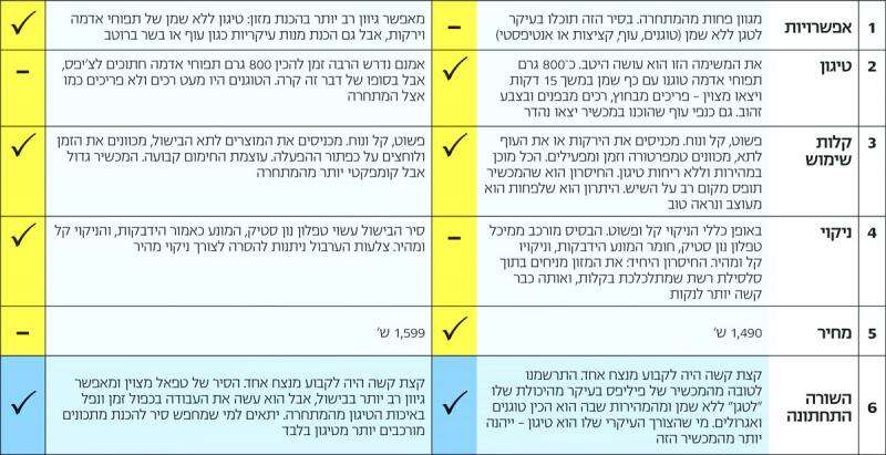 השורה התחתונה: קשה לקבוע מנצח. התרשמנו שמי שהצורך העיקרי שלו הוא טיגון - ייהנה יותר מהפיליפס. הוא מהיר ומספק מאכלים פריכים וטעימים. מי שמחפש גיוון ואפשרויות מרובות יותר - עדיף לו לרכוש את הסיר של טפאל.