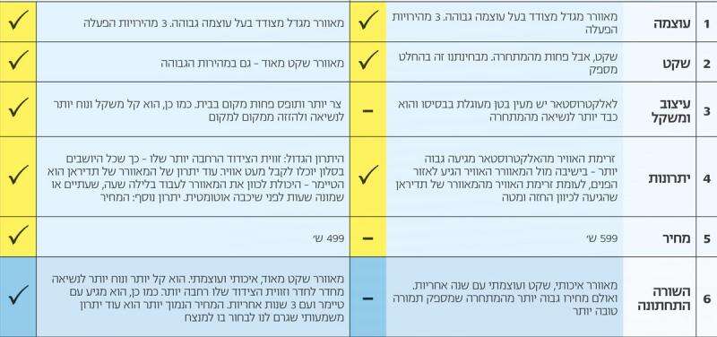 השורה התחתונה: שני המאווררים טובים ושקטים. לתדיראן יתרון בקלות הנשיאה, בזווית הצידוד הרחבה ובמחיר ולכן הוא המנצח מבחינתנו.