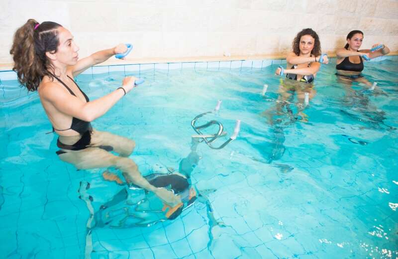 בתור מי שעושה ספינינג כבר שש שנים חשבתי שאני יודעת בדיוק למה לצפות. שיעור ספינינג במים, לא כל כך מסובך. אז זהו, להפתעתי, גיליתי שכשהאופניים נמצאים בתוך בריכה אפשר לעשות בהם הרבה יותר מכשהם נמצאים ביבשה. כך מצאתי את עצמי עובדת מאוד חזק על שרירי הידיים והבטן, בעוד דווקא הדיווש עצמו היה פחות אינטנסיבי ועוצמתי. לדברי מדריכת ה־Aquabiking, לילך לוי להב, "המים מנטרלים את משקל הגוף ובכך מפחיתים עומס על המפרקים. שני אלה מאפשרים עבודה ממוקדת על שרירי הגב והבטן".