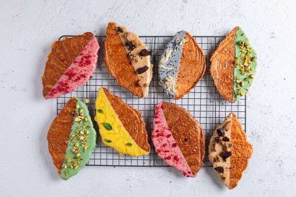 מדובר בקרואסון צרפתי קלאסי שעשוי מבצק חמאה עשיר, אשר במהלך האפייה משטחים אותו בטכניקה מיוחדת ששומרת על הצורה והטעם, אך משנה לחלוטין את המרקם והופכת אותו לקראנצ'י במיוחד. לאחר מכן, הוא נטבל בציפויים השונים עליהם מפזרים מגוון טופינגס. בפופ-אפ יוצעו חמישה טעמים: שוקולד לבן עם שברי פטל ותותים מיובשים, גנאש שוקולד פיסטוק עם שברי פיסטוק קלויים, שוקולד לבן לימוני עם קליפות לימון מסוכרות, שוקולד לבן עם שומשום שחור וחלבה ושוקולד בלונדי עם צ׳אנקים של עוגיות שוקולד צ׳יפס.