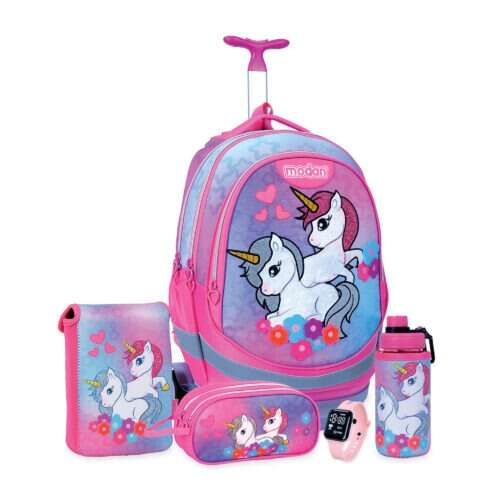 מחירי מודן: מארז בסיסי (תיק גב, עגלת טרולי, קלמר תואם, כיסוי גשם ושעון יד): 349 שקל. מארז מורחב (כולל בקבוק שתייה, קופסת אוכל, כיסויים תרמיים ופריטים נלווים): 439 שקל.