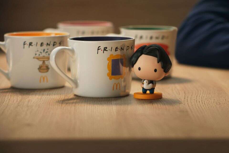 אחרי שיתוף הפעולה של רשת מקדונלד'ס ו"חברים", שבמהלכו הושקו ארוחות קונספט עם בובות אספנים של סדרת הטלוויזיה האהובה, עכשיו הארוחות יכללו ספלים מעוצבים עם פיצ'רים מהסדרה, בארבעה עיצובים שונים, במקום בובות ה"חברים".