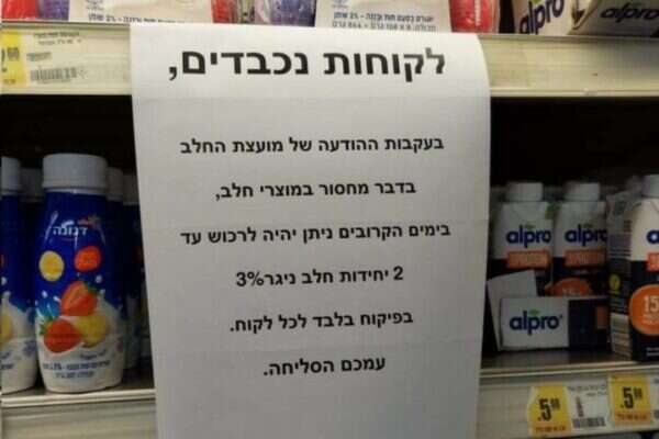 תקופת החגים נותנת את אותותיה, ובשל ימי הייצור המועטים החליטו מספר רשתות להגביל את רכישת החלב הניגר • רשת שופרסל: "הוחלט כי בימים הקרובים תוגבל רכישת חלב 3% שבפיקוח עד שלוש יחידות ללקוח" • ברשת אושר עד הגבילו לארבע יחידות