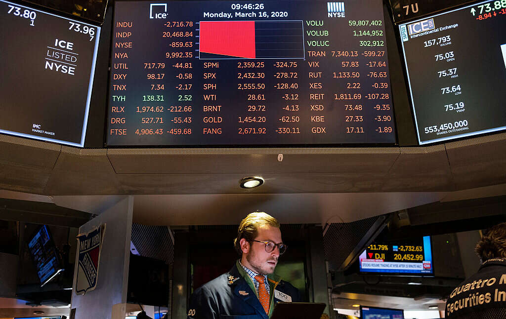 בשעות הערב המאוחרות, שעון ישראל, המדדים המובילים בניו יורק איבדו יותר מ־12%. יום קודם לכן הממשל הודיע על סגירת בתי קפה, מסעדות וכינוסים והוסיף לאווירת המצוקה של העולם העסקי. מדד הדקס בגרמניה נפל ב־5.3%; מדד הפוטסי בלונדון איבד 4% וה"קאק 40" בפריז איבד 5.75%. בארה"ב מצפים לחבילות סיוע של הממשל - הזרמה של כספים לשוק. הצעדים יצטרכו להיות מדודים, שלא כמו הצעד הדרסטי של הפד ששידר למשקיעים לחץ ואובדן שליטה.
