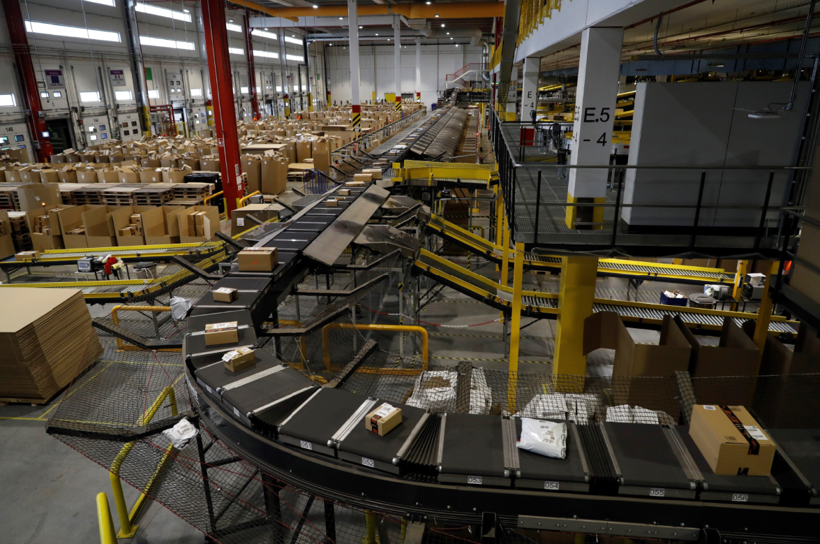 מחסן מרכזי של חבילות של חברת אמזון // צילום: אי.פי.איי // מחסן מרכזי של חבילות של חברת אמזון // צילום: אי.פי.איי