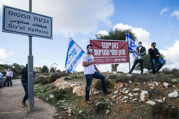 הפגנה של "שלום עכשיו" על רקע בנייה בגבעת המטוס (ארכיון, 2020) | צילום: אורן בן חקון
