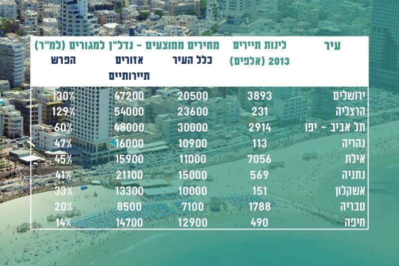 תיירות תורמת לערך הכלכלי-שיווקי של אזורי מגורים באותם יעדים. התהוותם של מקומות כבעלי ערך תיירותי, לצד פיתוח תיירותי, משפיעים באופן ישיר על מיתוג המקום - ובעקבות כך על הביקושים והמחירים בשוק הנדל"ן למגורים. בדיקה שנערכה בתשע ערי תיירות מובילות בארץ מאששת את הסברה הזו. נמצא כי הפערים במחירי הנדל"ן בין האזורים התיירותיים לשאר חלקי העיר לרוב גבוהים מאוד – במיוחד בירושלים, הרצליה ובת"א - יכולים להגיע עד ל-130%.